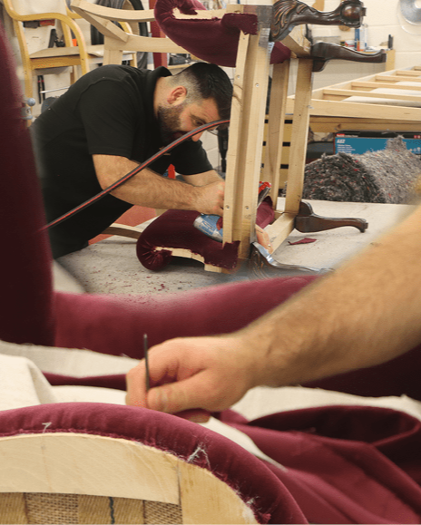 We take pride in building and designing pieces like the Aston Knole chair in our workshops for over 50 years. In which we continue to reinforce our commitment to the artistry and craftsmanship of traditional English upholstery.